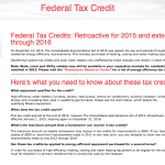 The Consolidated Appropriations Act of 2015 was signed into law and extends through 2016, the tax credit for residential energy efficiency improvements. What equipment qualifies for the credit? High-efficiency water heaters, furnaces, boilers, heat pumps, central air conditioners, building insulation,…